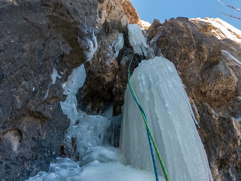 3.Sl 60m WI5+ Stand an Bohrhaken