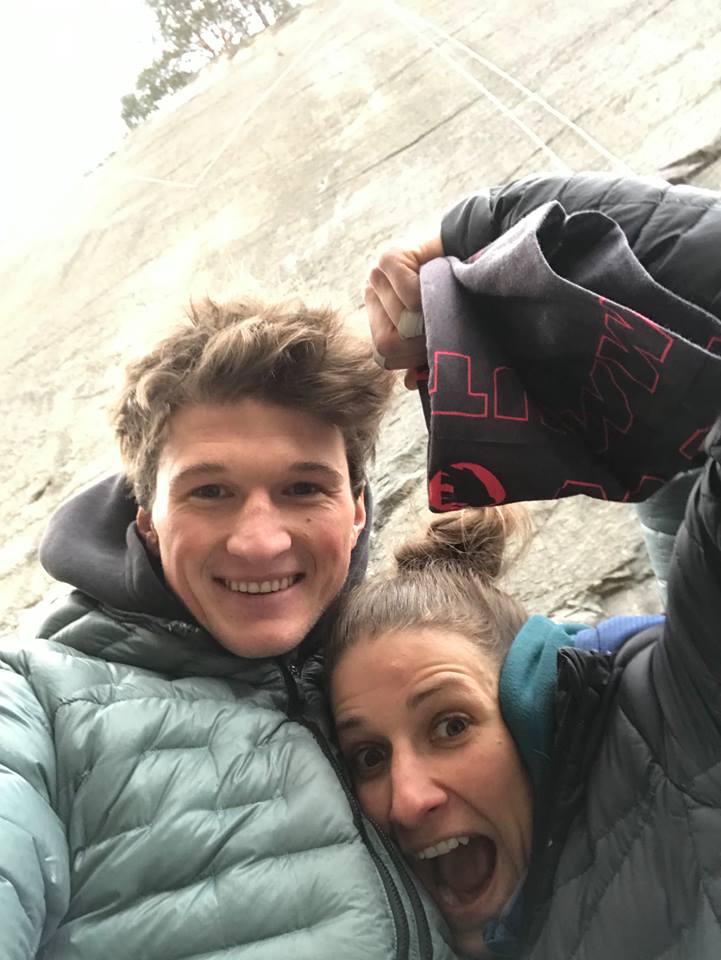 Zusammen mit dem mittlerweile in der Schweiz lebenden Michi Wohlleben, projektiert auch die 29-jährige Vorarlbergerin Nadine Wallner die Route. Nadine ist ja eigentlich als Freeride World Champion bekannt. Am Tag der Begehung durch Michi hatte auch Nadine einen vielversprechenden Versuch, stürzte aber nach der Crux nur zwei Meter vor dem Umlenker.