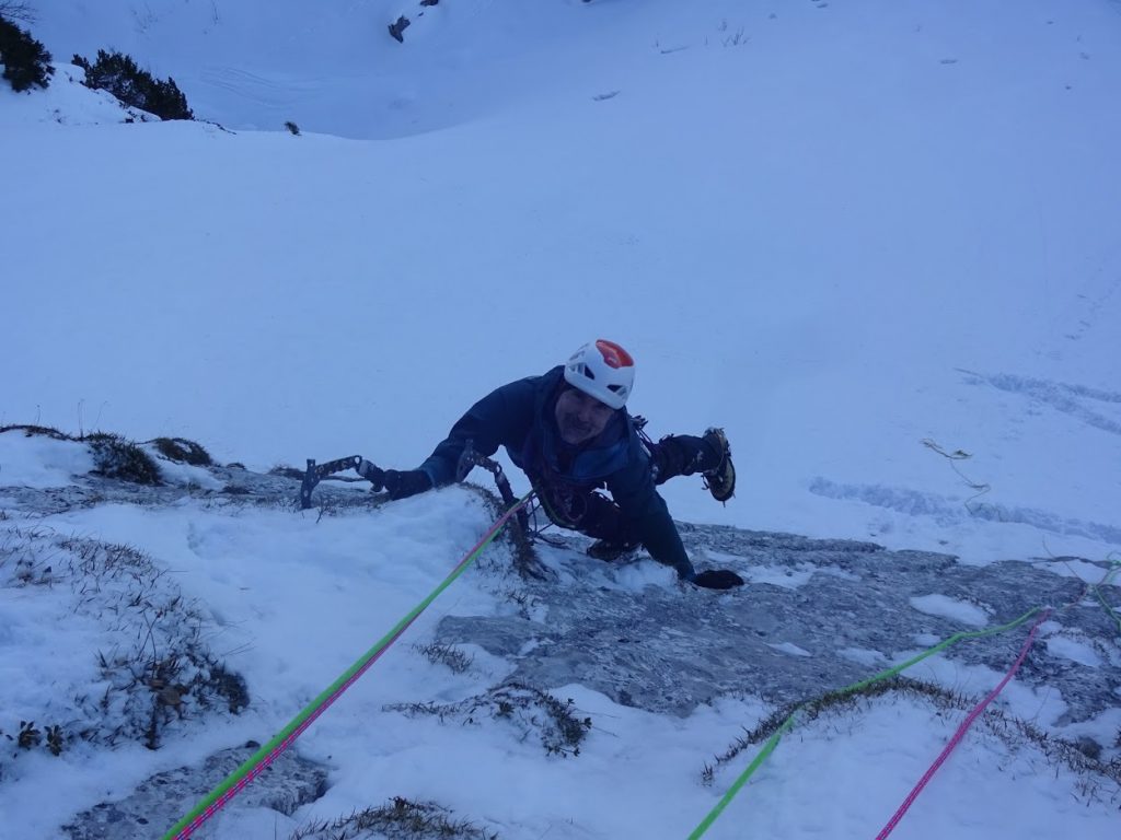 erstbegangen. Nach Aussage der Erstbgeher handelt es sich um elegante und abwechslungsreiche Mixedkletterei, die mit Leichtigkeit an gefrorenen Graspolstern durch senkrechte Passagen führt. Vielleicht ist die Route eine schönere, etwas schwierigere Schwester von „Bayerisch-Schottische-Wintergames“.