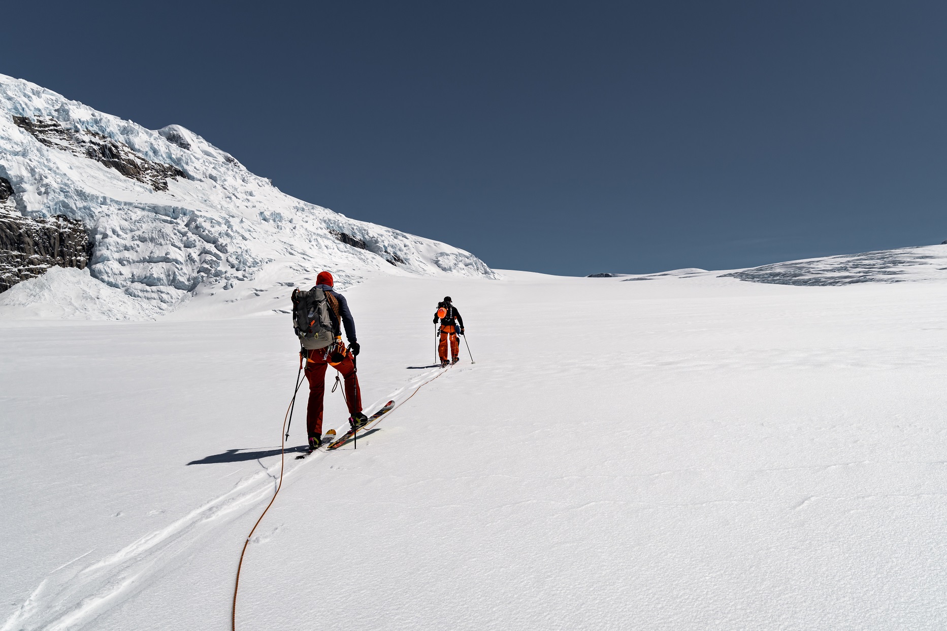 Unser Blick ging aber nicht nur gen Westen zum Pazifik, auf der anderen Seite stach uns die markante Nordostwand des Cerro Cachet ins Auge. Der rund 2600 Meter hohe Berg war seit der Erstbesteigung im Jahr 1971 durch neuseeländische Bergsteiger erst ein weiteres Mal erklommen worden, beide Mal über die recht einfache Rampe vom Inlandeis aus. Aber es gab noch keine Besteigung über die senkrechte Nordostwand – unsere Challenge für das nächste stabile Wetterfenster.