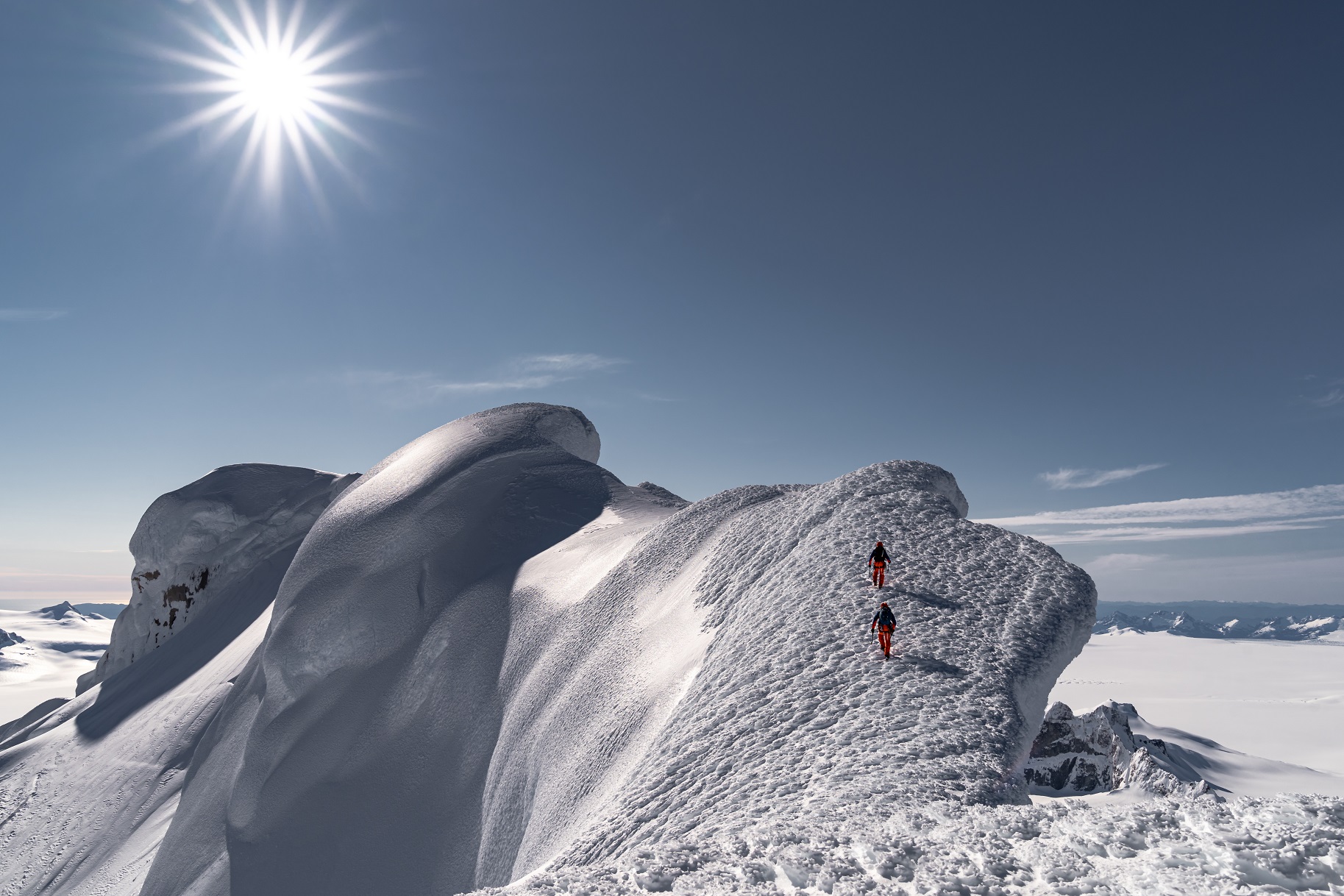 Doch so schön der Ausblick und die Glücksgefühle auf dem Gipfel auch waren, plötzlich macht es bei uns Klick – die beschwerliche Abfahrt stand uns noch bevor. Wir hatten nur Bergschuhe und mit diesen auf Skiern über den winderodierten, teils auf blanken Gletschereis zu fahren, war eine echte Tortur. Erst nach 16 Stunden Anstrengungen erreichten wir unser Basislager – todmüde, hungrig, aber auch überglücklich. Beim Mitternachtsgelage am Lagerfeuer ist uns so richtig bewusst geworden, was wir geschafft hatten – und so gab es zur Feier des Tages zu den Nudeln mal eine Dose Thunfisch dazu.