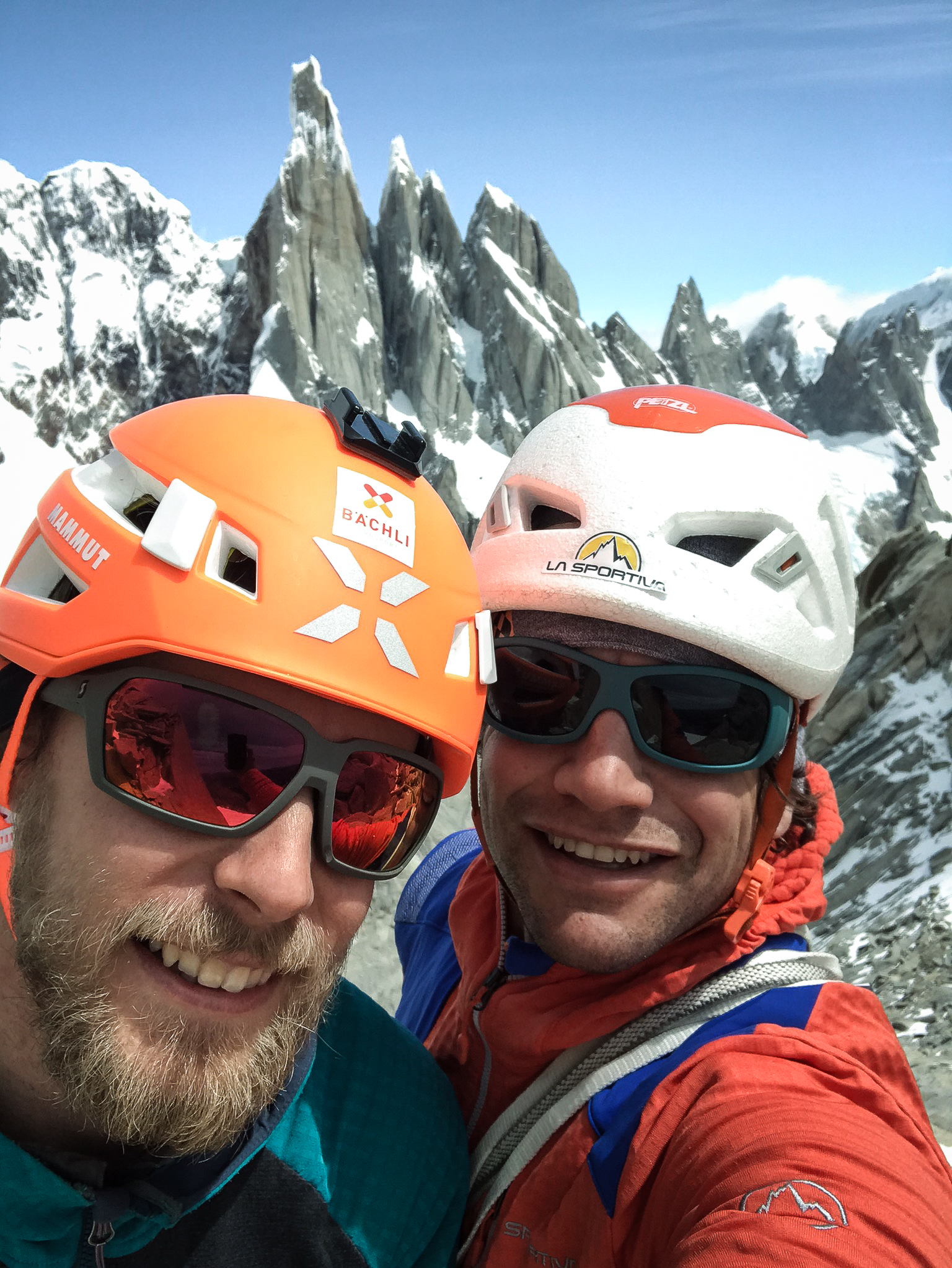 Roger Schäli weilte zum sagenhaften achten Mal in Patagonien, dies mal mit Jonas Schild. Sie bestiegen die Aguja Saint-Exupéry, Aguja Rafael, durchstiegen über die 900 Meter lange „Fonrouge Rosasco“ die gewaltige Südwand der Poincenot und zwei mal die Aguja de l’S. Für Jonas war es die erste Reise nach Patagonien. Lassen wir Roger zu Wort kommen:
