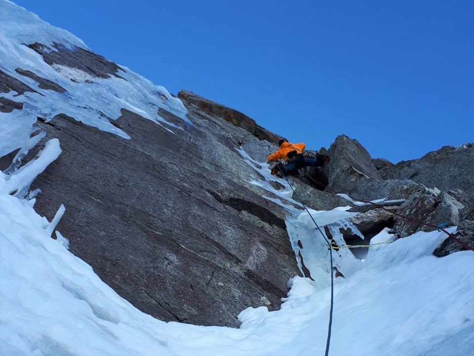 Die „Sagzahn-Verschneidung“ ist eine anspruchsvolle Mixed-Kletterei an sehr brüchigen Fels und deswegen eigentlich nur im Winter ein Ziel.