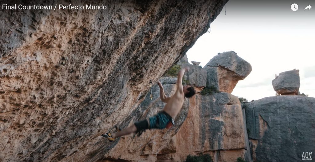 Insgesamt verbrachte Adam Ondra 44 Tage in den spanischen Klettegebieten Margalef und Oliana. Davon verwendete er 15 Tagen damit „Perfecto Mundo“ 9b+ zu probieren. Nach viel Zeit des Wartens blieben eine Woche lang die Bedingungen großartig. Es war kalt, trocken und windig. Einfach ein perfektes Szenario, aber schaut selbst: