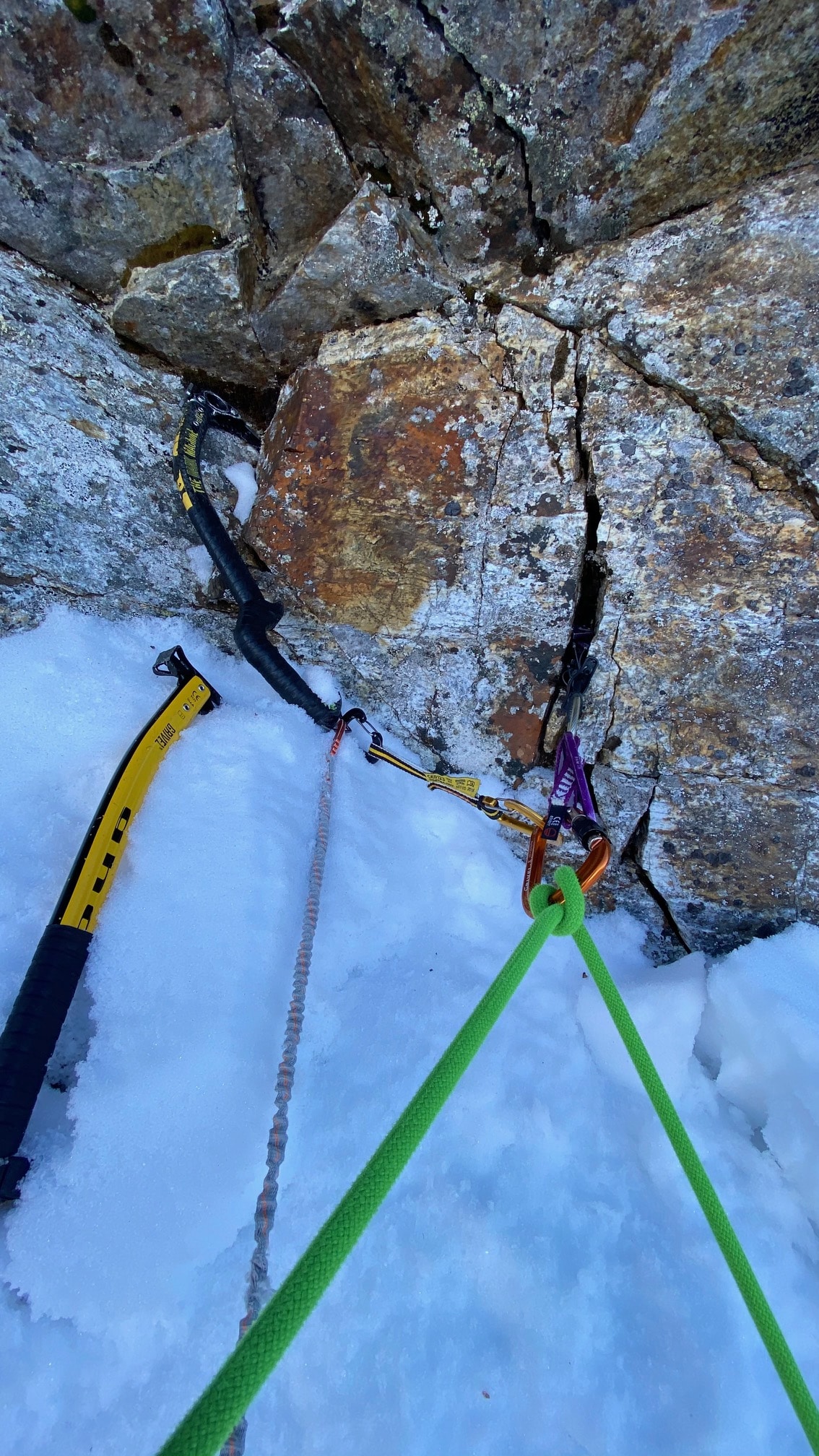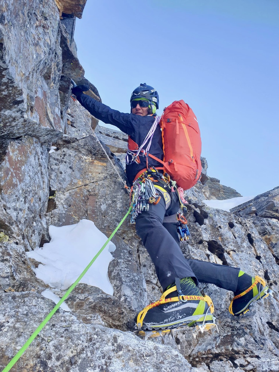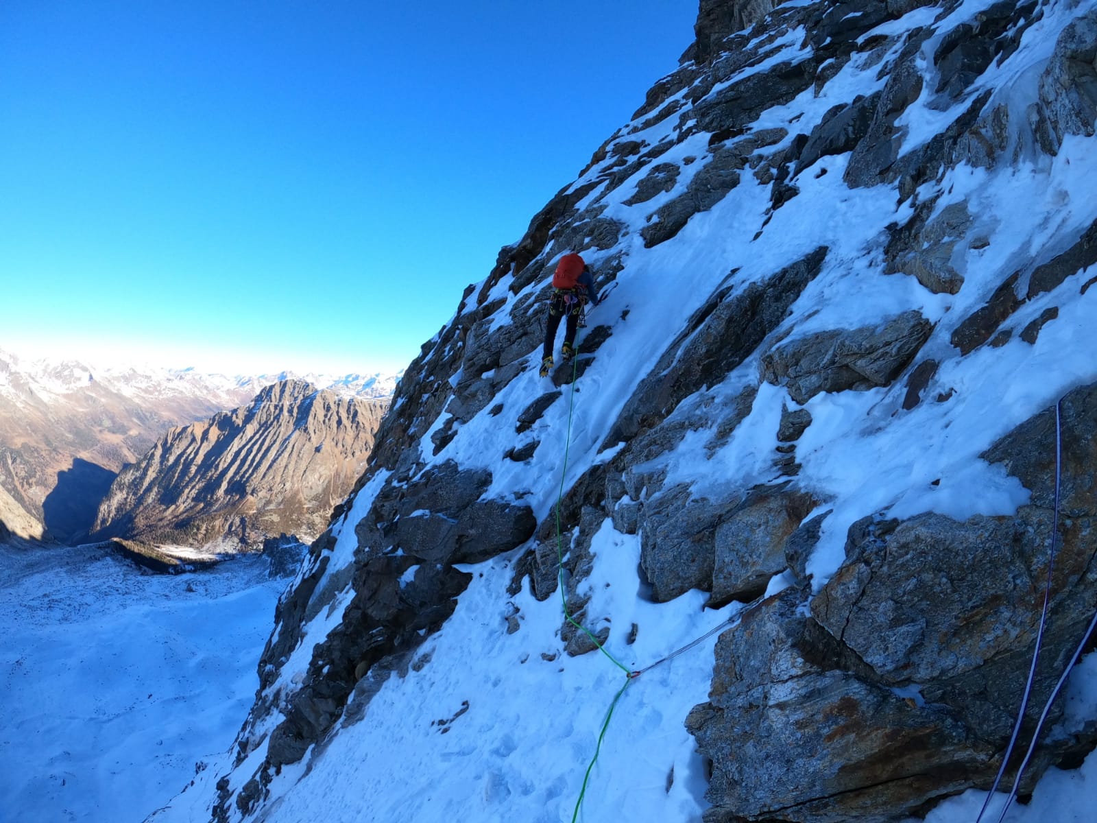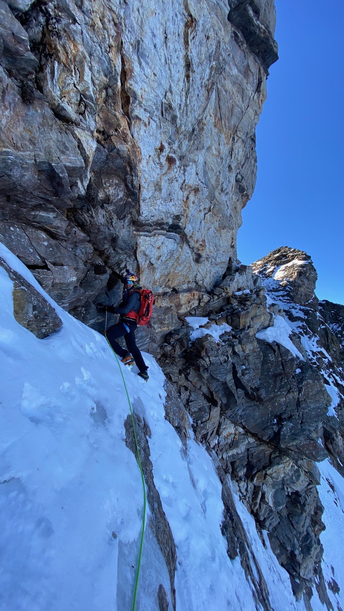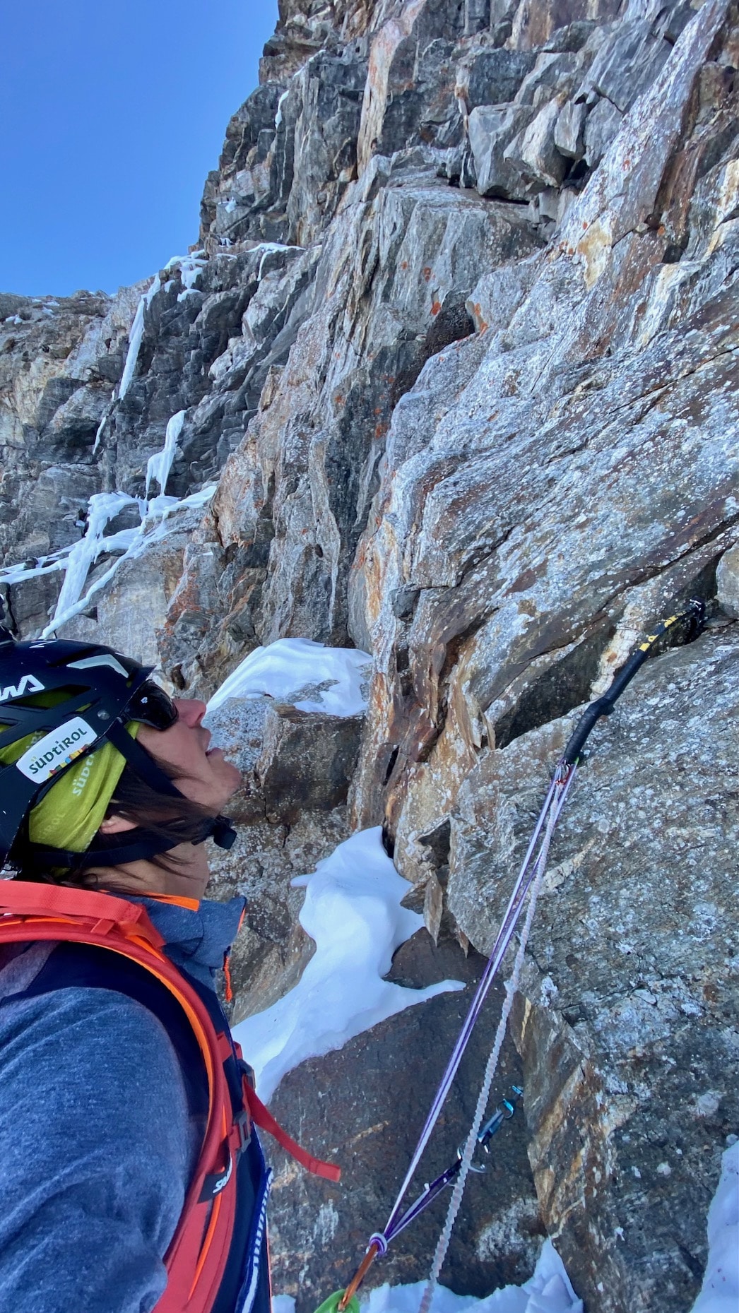 Charakter: schöne kombinierte Kletterei auf teilweise brüchigem Fels nur bei kalten Temperaturen empfehlenswert!
