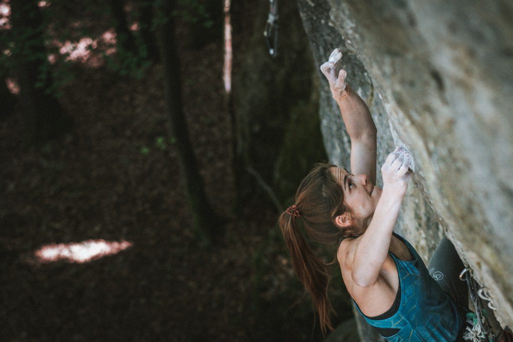 Die 23-jährige Franziska „Franzi“ Dietz konnte eine Wiederholung der Route „Headcrash“ (XI-/8c) am Wasserstein bei Allersdorf holen. Bemerkenswert ist, dass Franziska Dietz erst seit dem Jahr 2016 klettert.