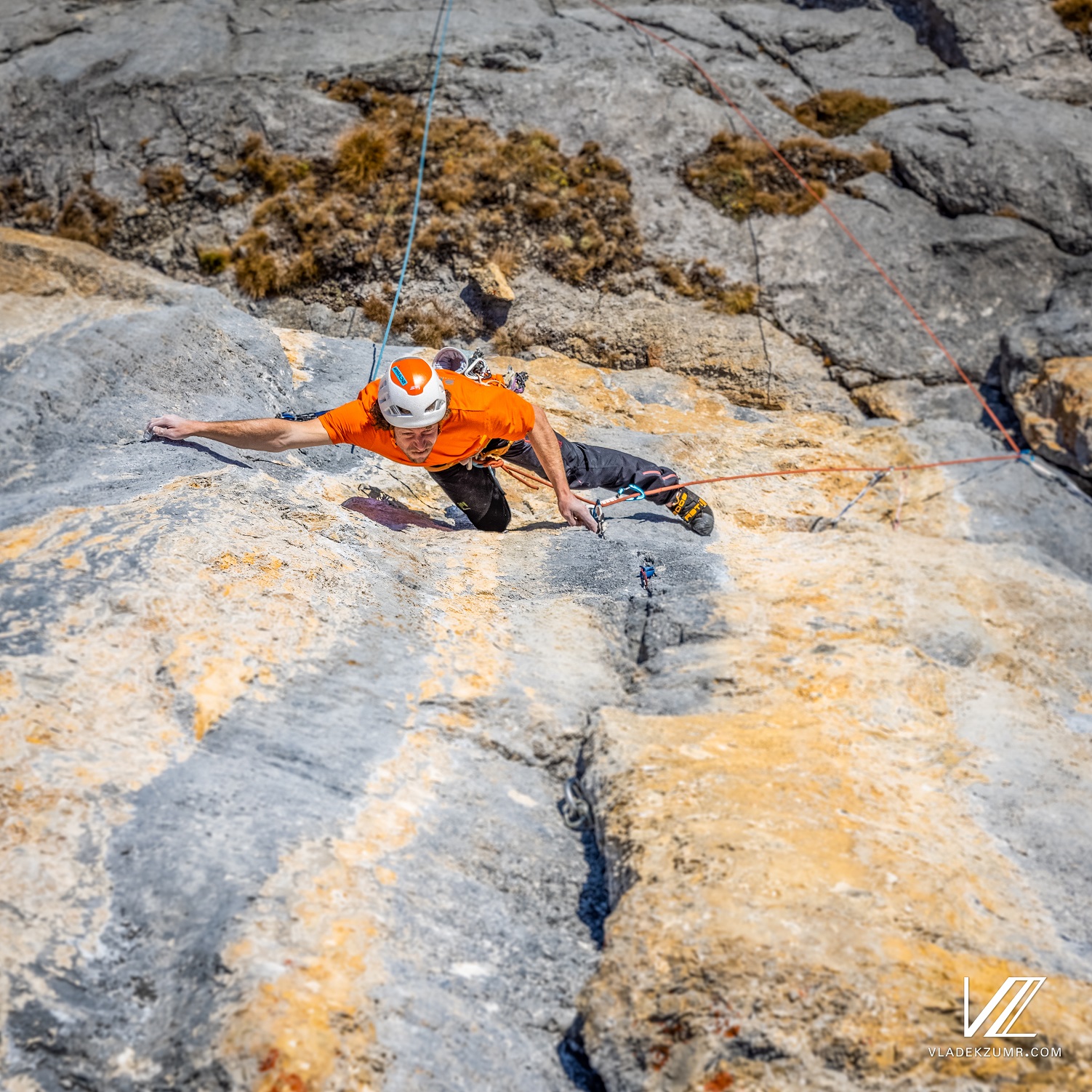Silvan: „Ohne Bohrhaken in kompakten Kalkwänden zu klettern forderte von uns viel mehr Zeit, Logistik und Können. Nicht selten platzierten wir mehrere Sicherungen auf gleicher Höhe und waren doch nicht ganz sicher, ob das nun hält. Wir waren beide 100% motiviert und pushten uns gegenseitig. Ins Ungewisse loszuklettern und nur dann eine Sicherung zu legen, wenn es der Fels zulässt, fühlte sich ein bisschen rebellisch an: Wir waren wie Schuljungen die etwas Verbotenes machen ;).“