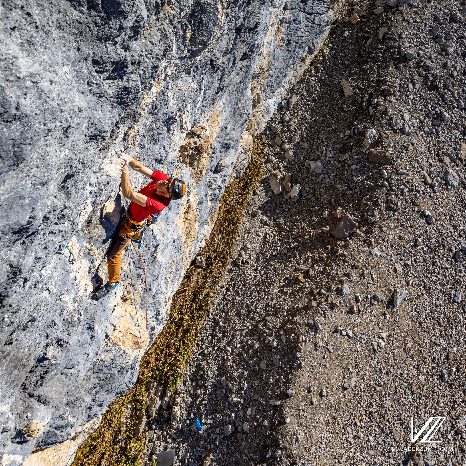 Am 15.10.2021 war es dann soweit: Mit grossartiger Unterstützung durch Peter konnte Silvan die Route endlich Rotpunkt klettern. Tatsächlich wurde die letzte Seillänge erst an diesem Tag erstbegangen! Die erste freie Begehung war also auch die Erstbegehung.