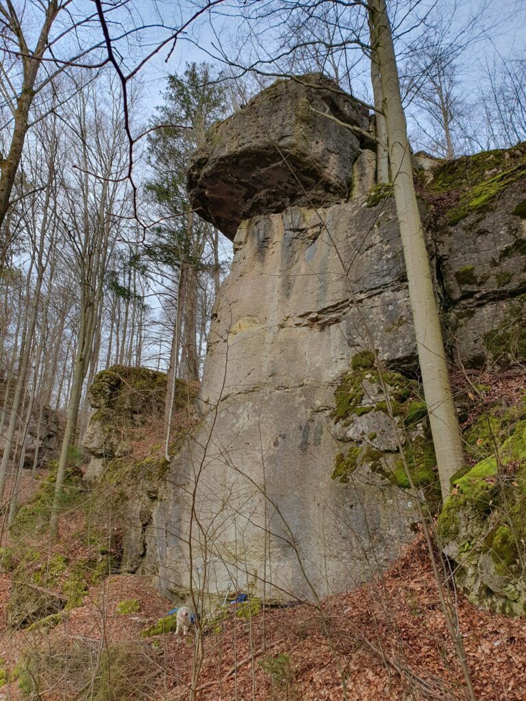 Jörg Perwitzschky konnte im Mittleren Wiesenttal bei Waischenfeld mit dem Steinpilz ein neues Massiv mit acht neuen Routen und zwei Bouldertraversen erschliessen. Die Schwierigkeiten gehen vom unterm achten Grad bis zum glatten neutem Grad. Das markante Dach ist ein noch nicht eingebohrtes Projekt. Bitte respektiert das!
