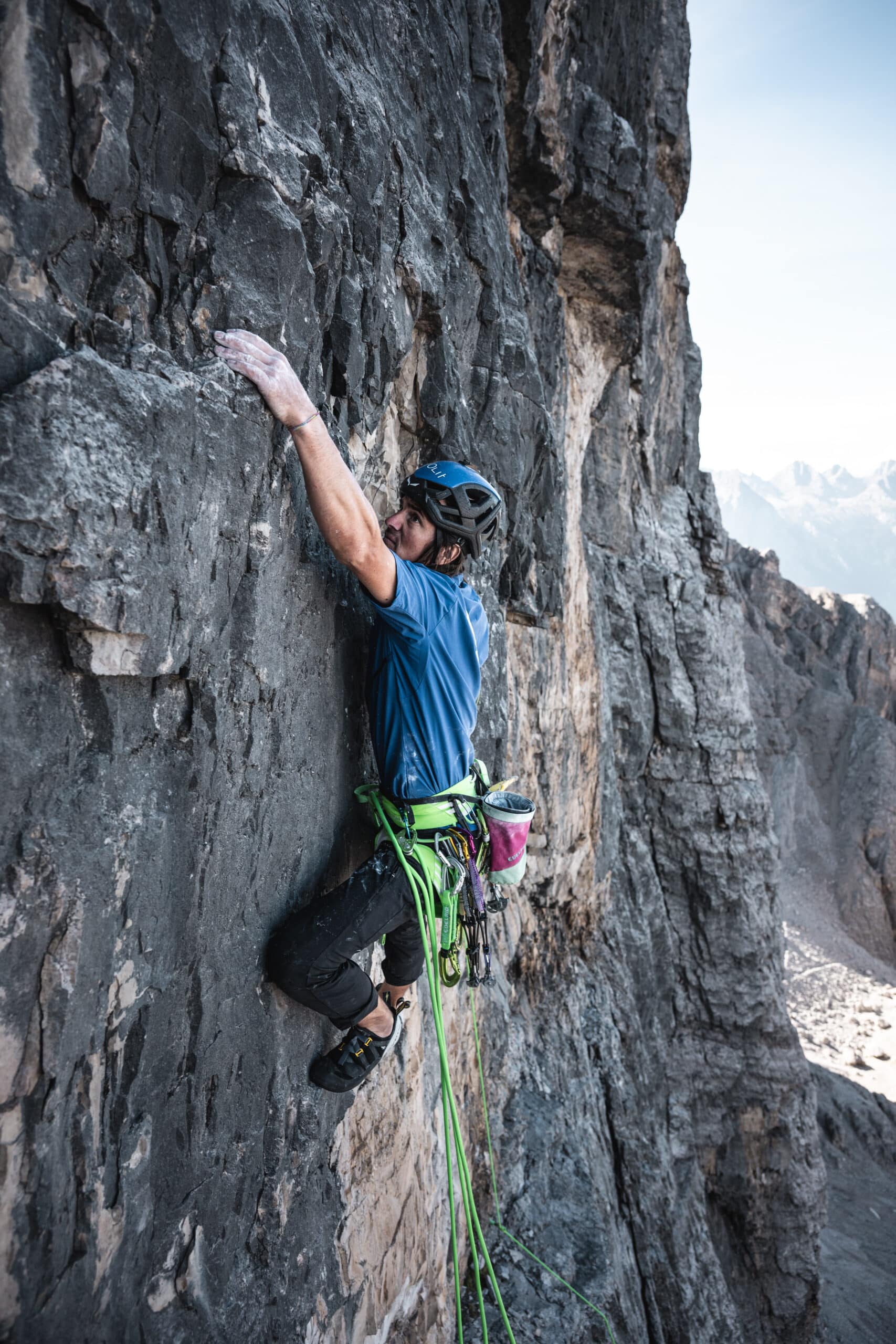Es war wie schon öfter bei Simon: Während einer kurzen Pause beim Aufstieg auf eine der Drei Zinnen, die er schon einige Male geklettert ist, war es der Blick auf die  500 Meter steile Wand am Mittleren Zwölfer, die in ihm etwas auslöste, das ihn nicht mehr in Ruhe ließ.
