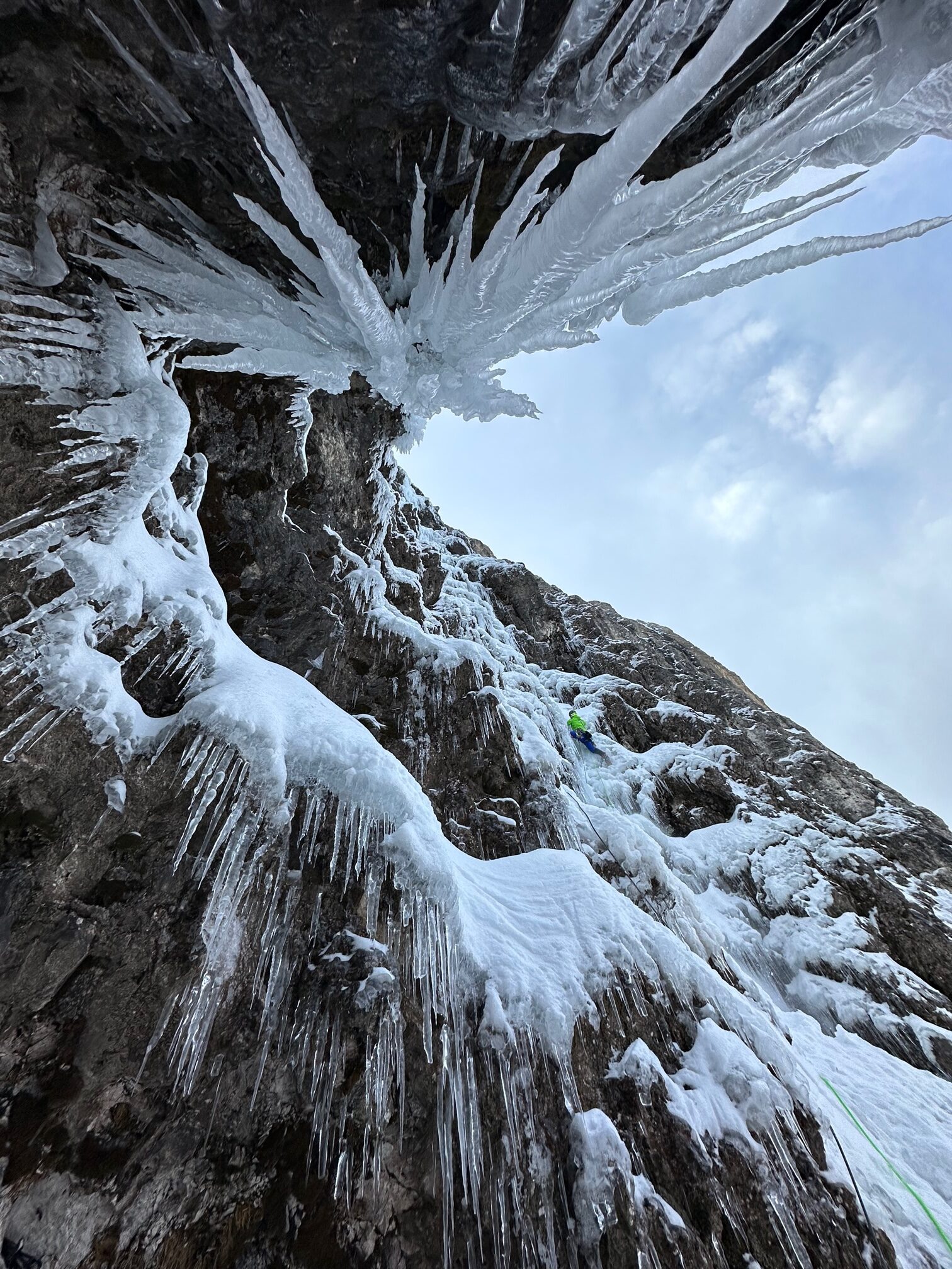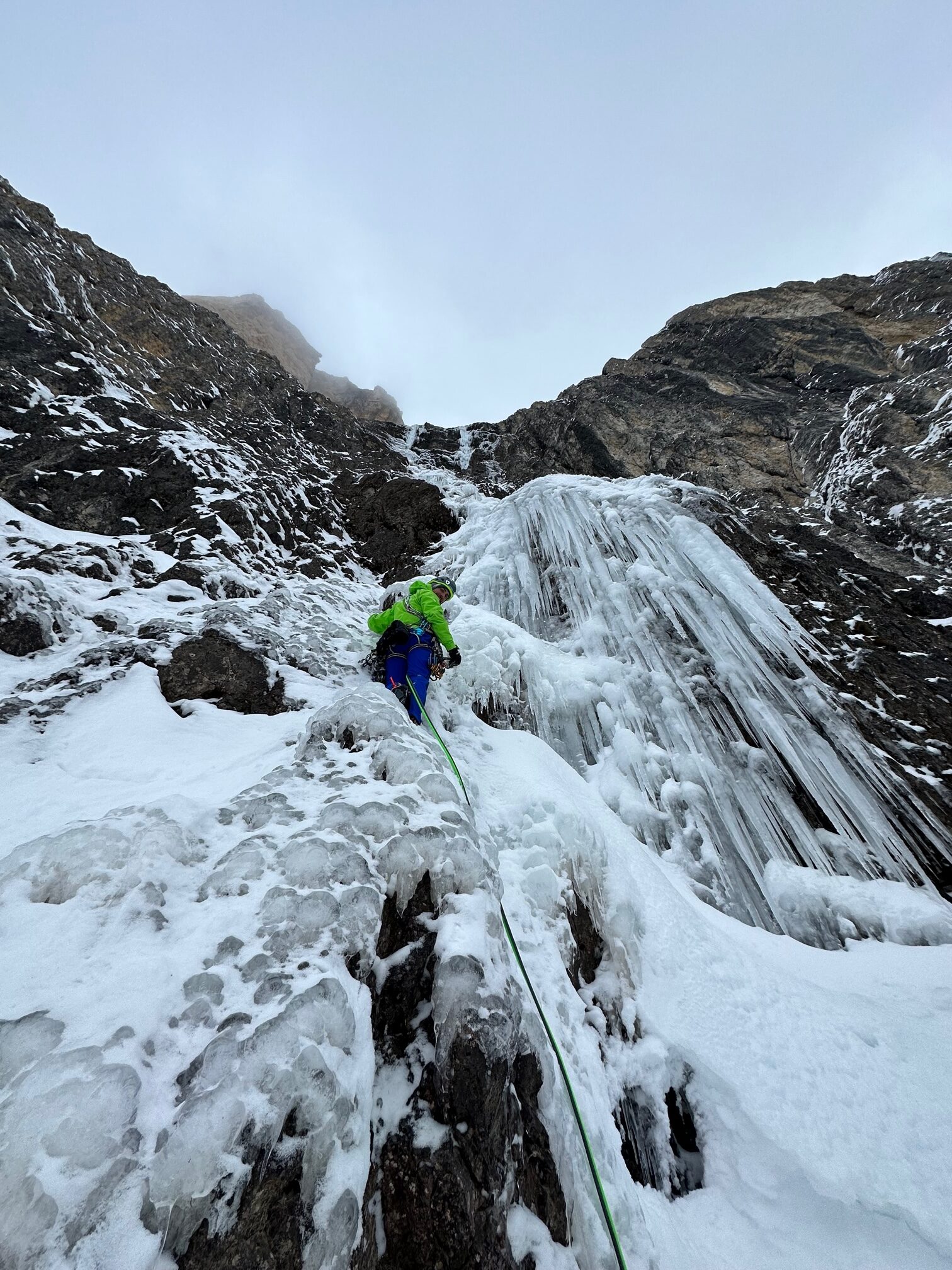 “Wir hatten mit vielen gerechnet, aber nicht, dass so viel Eis in diesem versteckten Gully auf uns wartet. Es war wie die Kirsche auf der Sahnetorte! Schon der erste Teil überraschte uns mit schöner Kletterei und machte einfach nur Spaß. Dass die Linie so bis zum Gipfel weitergeht, hatte sich niemand von uns getraut zu träumen”!