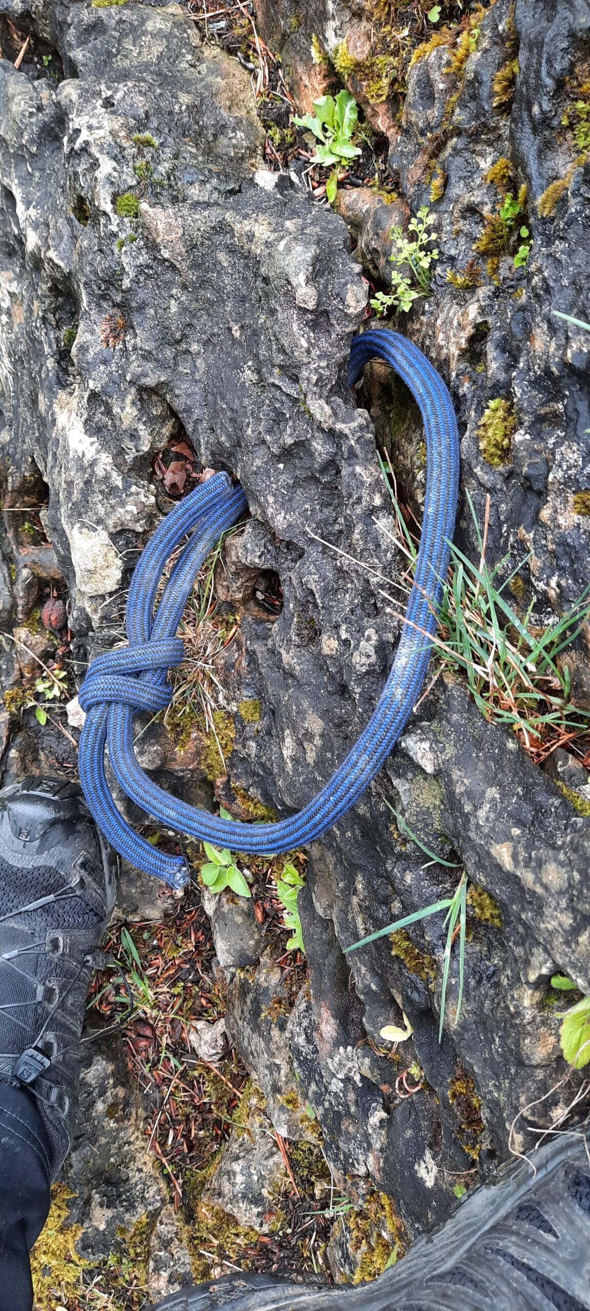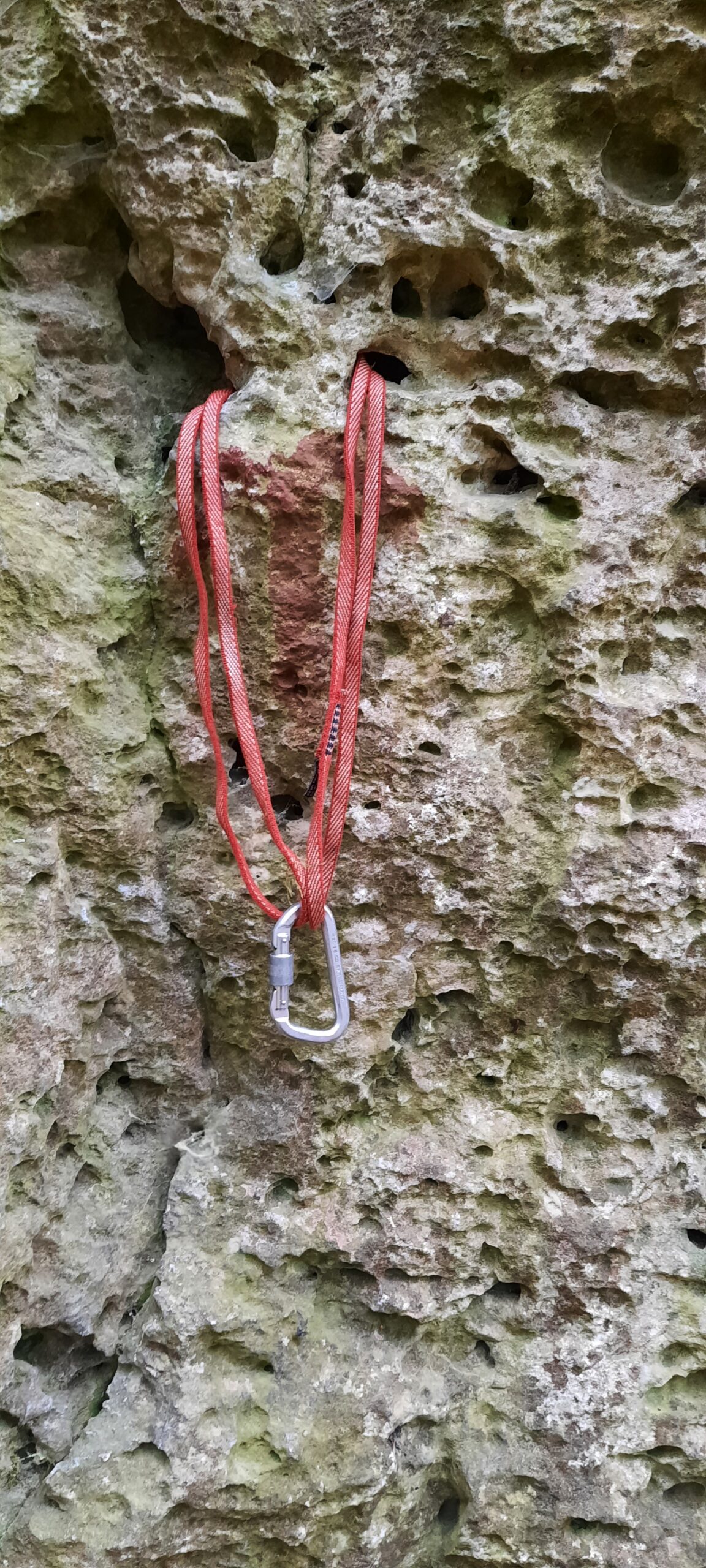 So unsere Empfehlung in Routen, welche man selbst absichern muss bzw. die Absicherung ergänzen muss, bitte eigene Schlingen, möglichst vernähte! Bandschlingen mitnehmen, der Knoten stellt auch einen Schwachpunkt dar. Dafür eigenen sich für Sanduhren und „Köpfl“ Bandschlingen unterschiedlicher Länge, welche man nach ein paar Jahren aussortieren sollte. Für schlecht zu fädelnde Sanduhren (geringer Lochdurchmesser) eignen sich 5-6 mm dicke, steife Kevlarschlingen. Davon reichen meist ein bis zwei Schlingen.