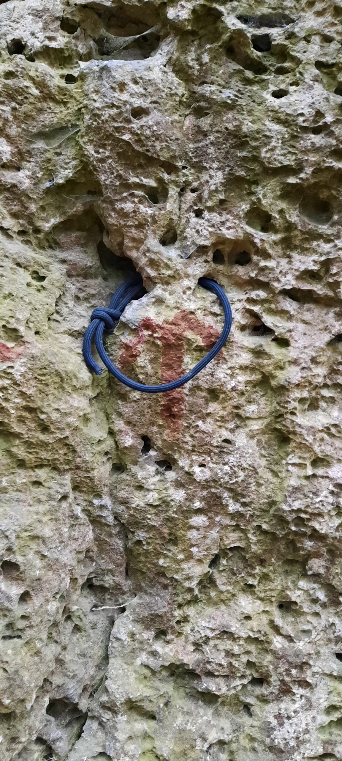 Mittlerweile wurde die Gefahrenquelle beseitigt und es steckt ein solider Umlenker im Fels. Das Material stammte wie immer von der ansässigen IG Klettern. Danke dafür!