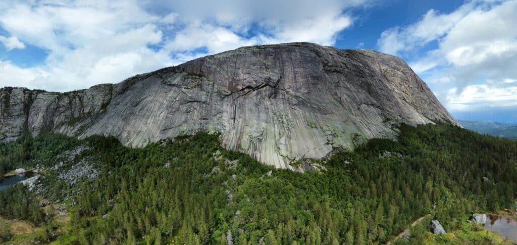 2 Tage blieben uns die Route einzubohren bevor 3-4 Tage Regen dem Klettern am Hægefjell eine Zwangspause verordnen würde. Dazu sollte ich erwähnen, das es sich am Half Dome von Norwegen vorwiegend um liegende Wände handelt, also meist weniger als senkrecht. Das Klettern hier ist bei feuchtem Fels deutlich schwerer bis unmöglich. Mitunter läuft es mehrere Tagen nach Regen aus den Bändern und Rissspuren die Wand herunter.